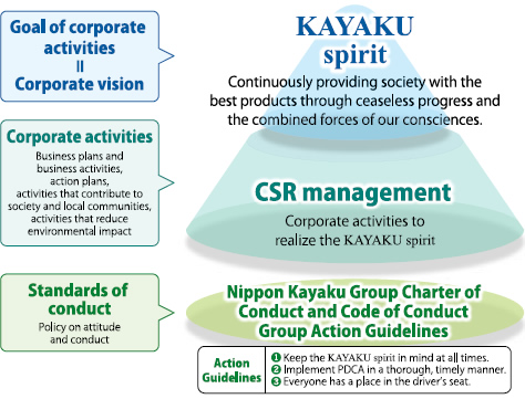 Given requirements by society that management be conducted in accordance with CSR, from 2011 the Nippon Kayaku Group began implementing its business operations to achieve CSR management.