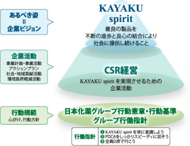 2011年より、社会的にCSRに基づいた経営を行うことが要求されていることを背景に、日本化薬グループにおいてもCSR経営の実現に向けて事業を進めている。