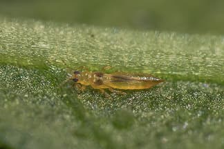 薬剤抵抗性を持ち難防除害虫に数えられるアザミウマ類。花やガクの隙間に潜んで吸汁し、果実を台無しにしてしまうため、特にイチゴ、ナス、トマトなどの作物では注意が必要です。