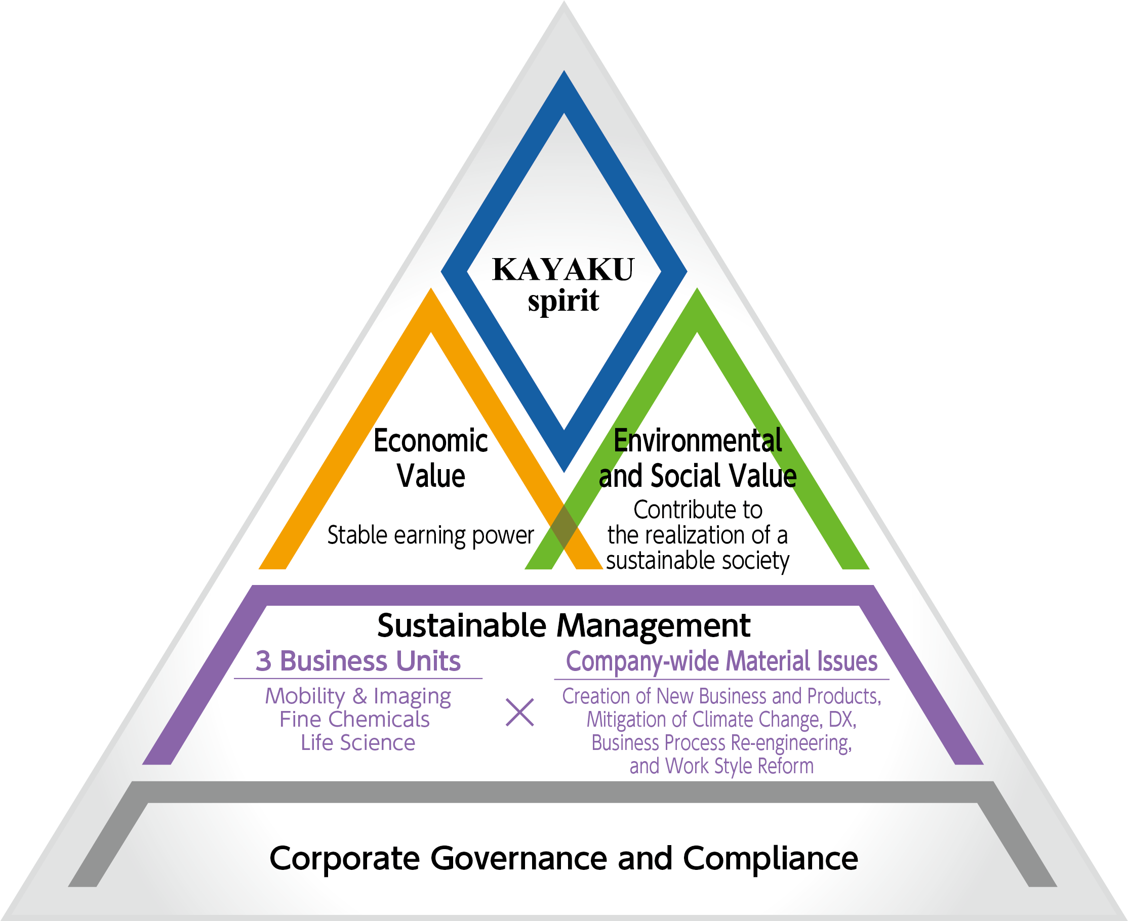 Under its corporate vision, the KAYAKU spirit, the Nippon Kayaku Group will practice sustainable management that responds to the trust placed in it by all of its stakeholders, by ensuring transparency and fairness in management and contributing to the creation of a sustainable environment and society through its business activities.