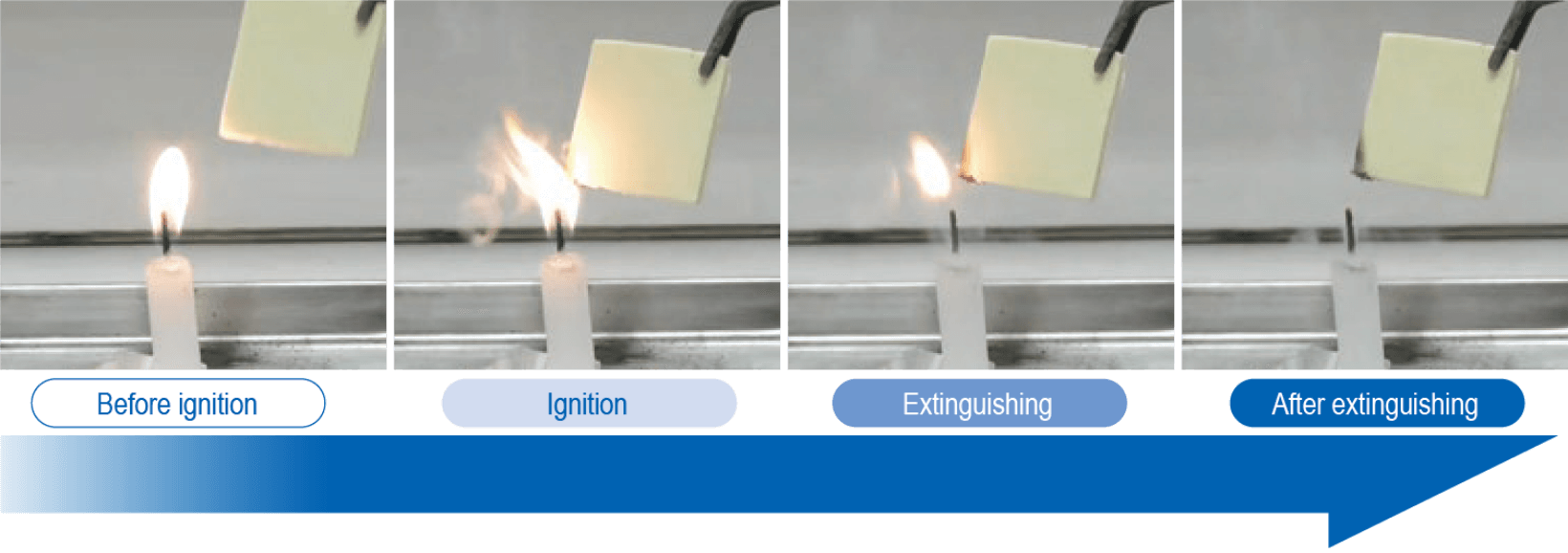 At Nippon Kayaku, we have developed an innovative fire-extinguishing component using the expertise of the Safety Systems Business, such as the handling of pyrotechnics and other reactive substances and extrusion processing technology for manufacturing gas-generating agents. It is a fireextinguishing component specifically for lithium-ion batteries, automatically reacting with high heat and instantaneously releasing effective fire-extinguishing agents. The negative catalytic effect of the released potassium radicals can quickly extinguish the flames of a lithium-ion battery, minimizing damage by effectively preventing the fire from spreading to other battery cells and peripheral devices.